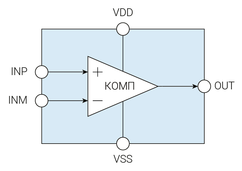 Диапазон входного синфазного напряжения от VSS–0,1 В до VDD+0,1 В