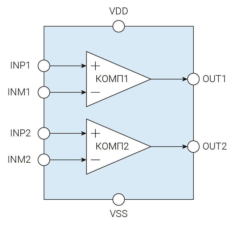 Микросхема К1397СА2Т – сдвоенный высоковольтный компаратор общего применения.