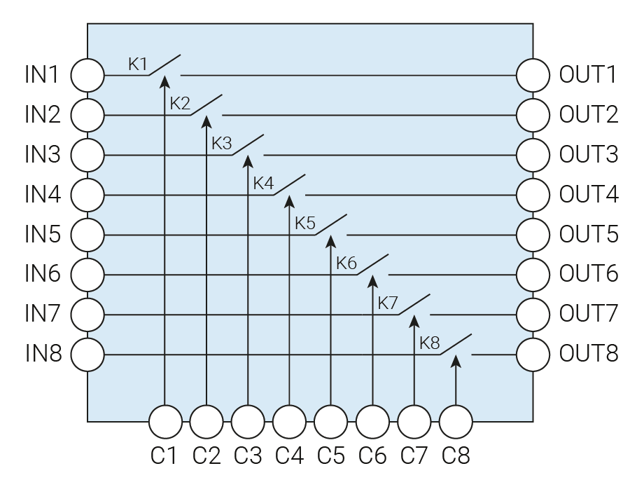 8 высоковольтных аналоговых ключей с индивидуальным управлением