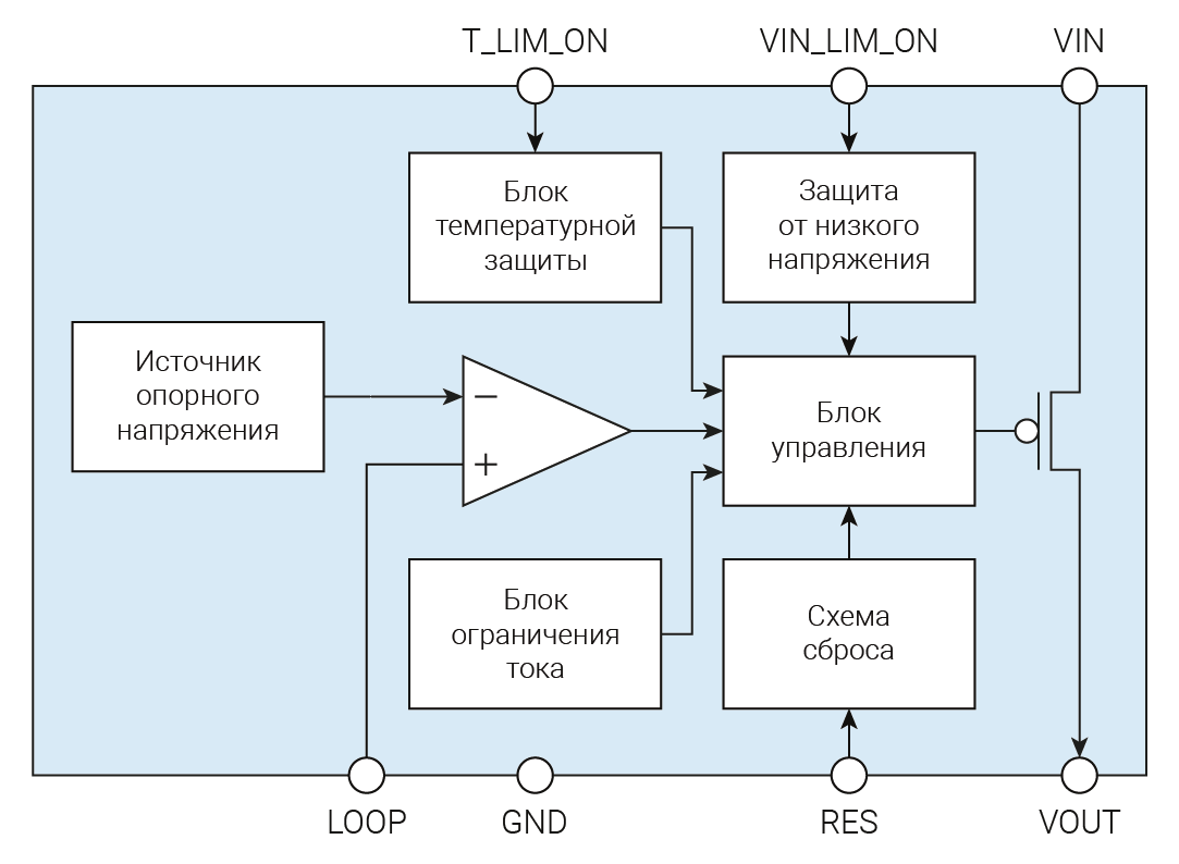 3,0 В...5,25 В; 150 мА линейный регулятор напряжения с температурной защитой и функцией ограничения тока