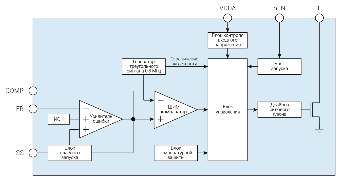 5,0 В ... 10 В; 50 мА; 0,8 МГц повышающий импульсный преобразователь напряжения