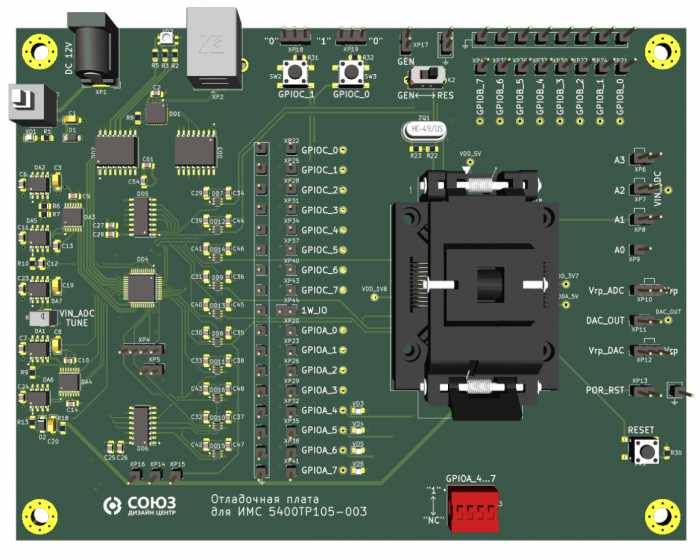Микросхема не входит в состав отладочного комплекта. Мы можем предоставить опытный образец микросхемы для отладки. Запрос на образец направлять на почту support@dcsoyuz.ru.