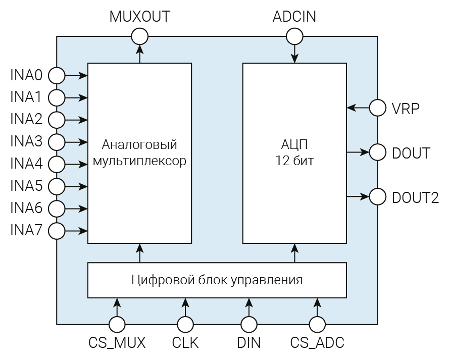 8-ми канальный 12-ти разрядный 500 кВыб/с АЦП последовательного приближения