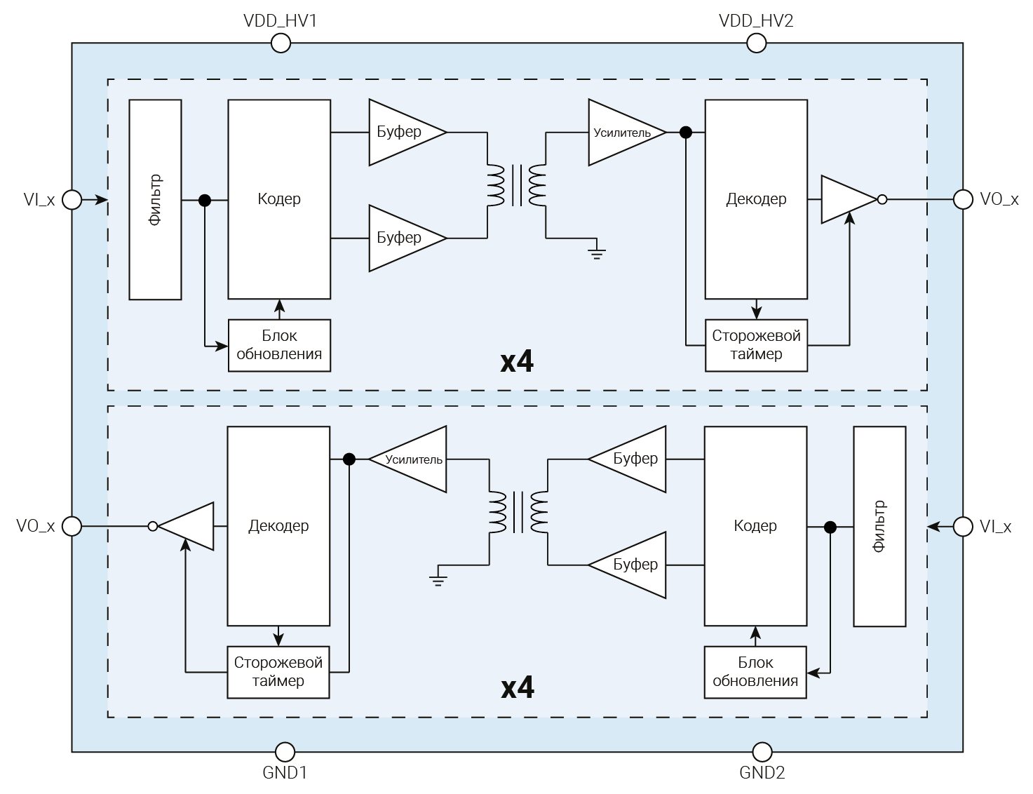 Приемопередатчик цифровых сигналов с встроенной гальванической развязкой
