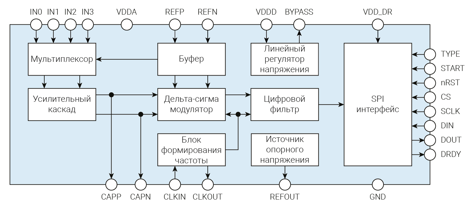 2-х канальный 24-х разрядный дельта-сигма АЦП