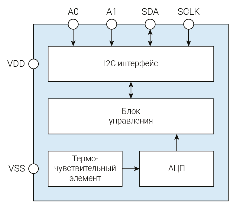 Интегральный цифровой датчик температуры c I2C интерфейсом управления промышленного применения